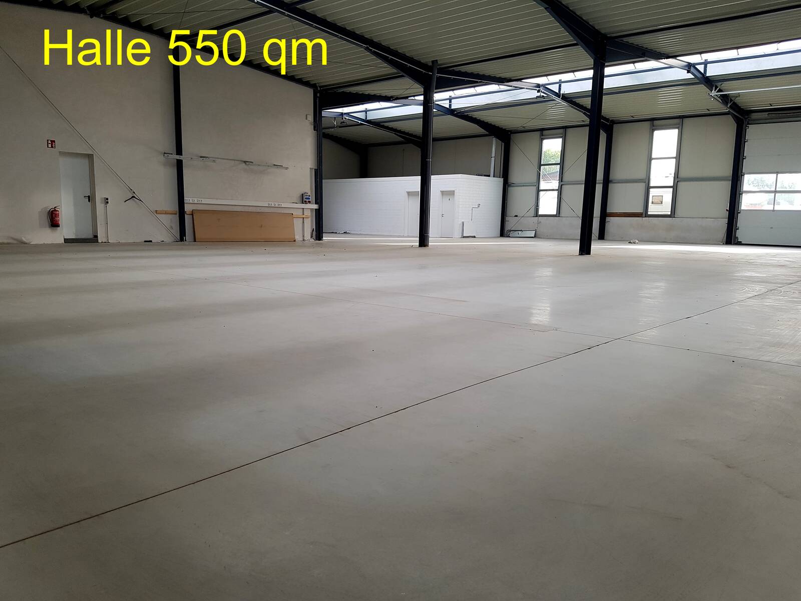 Die Halle hat eine Größe von 550qm + 2x WC jeweils 6 qm.