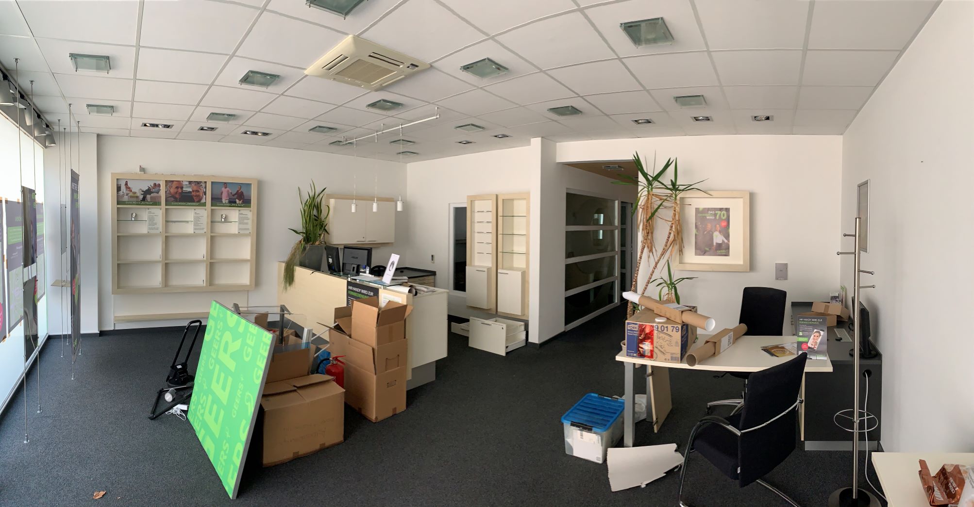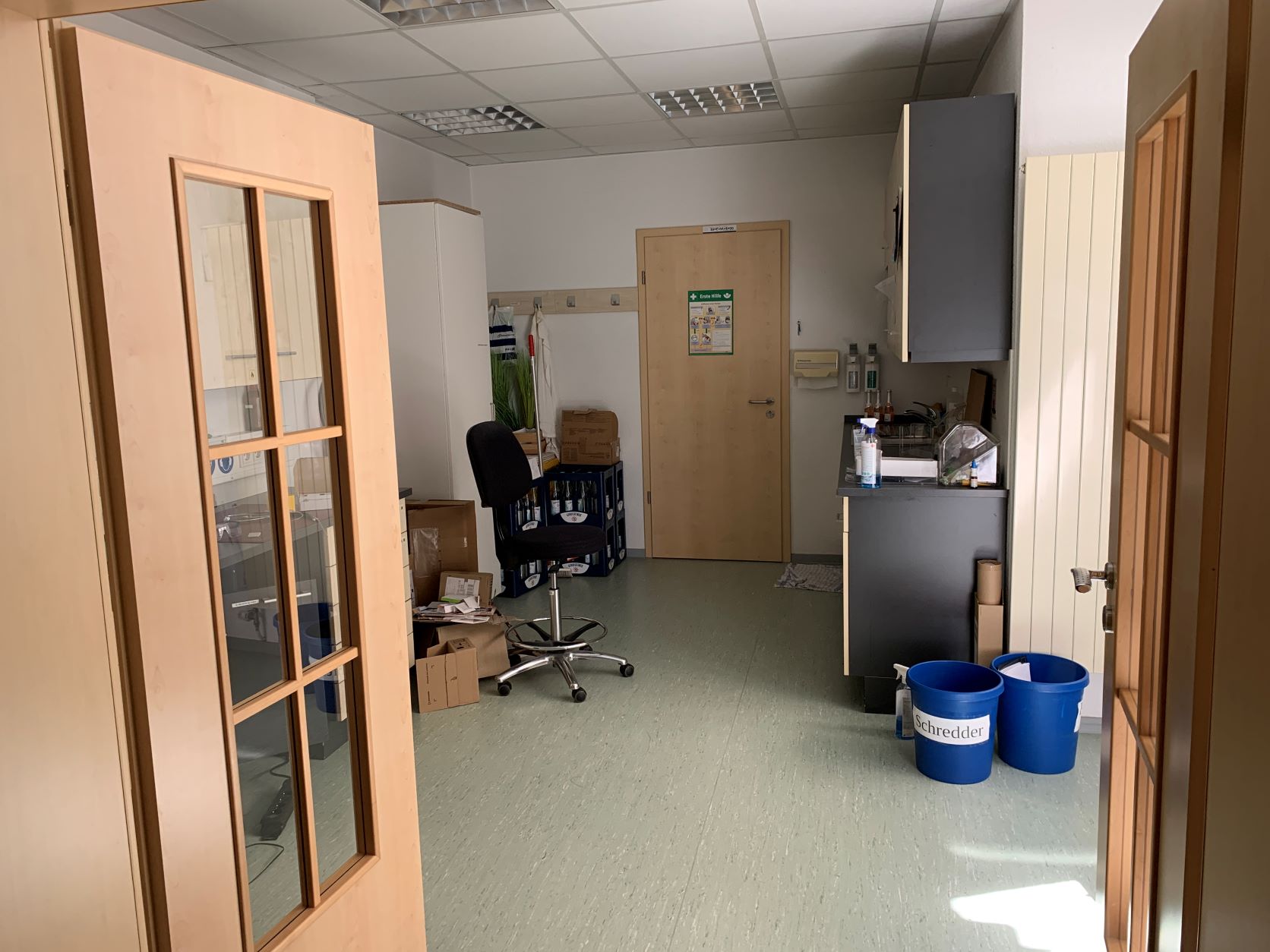 Im hinteren Bereich befindet sich ein kleines Büro, sowie Toilette und Kochgelegenheit.