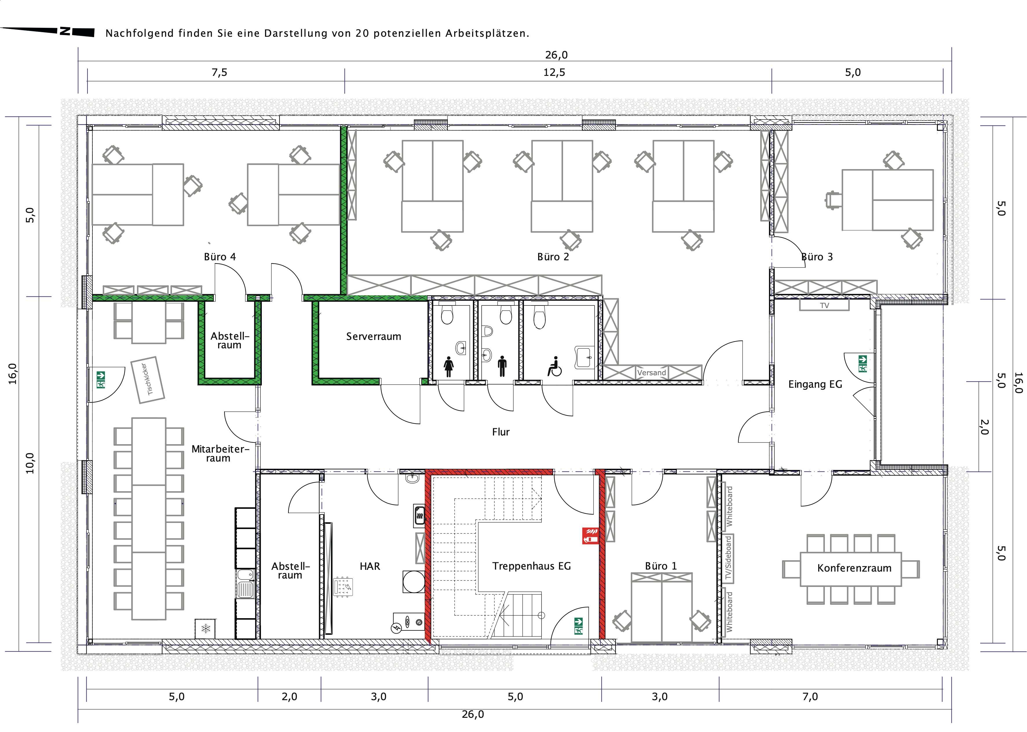bestehend aus 1 Großraum- 3 separaten Büros und 1 Konferenzraum Raum.
