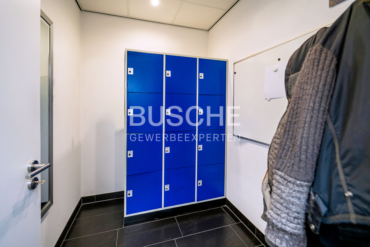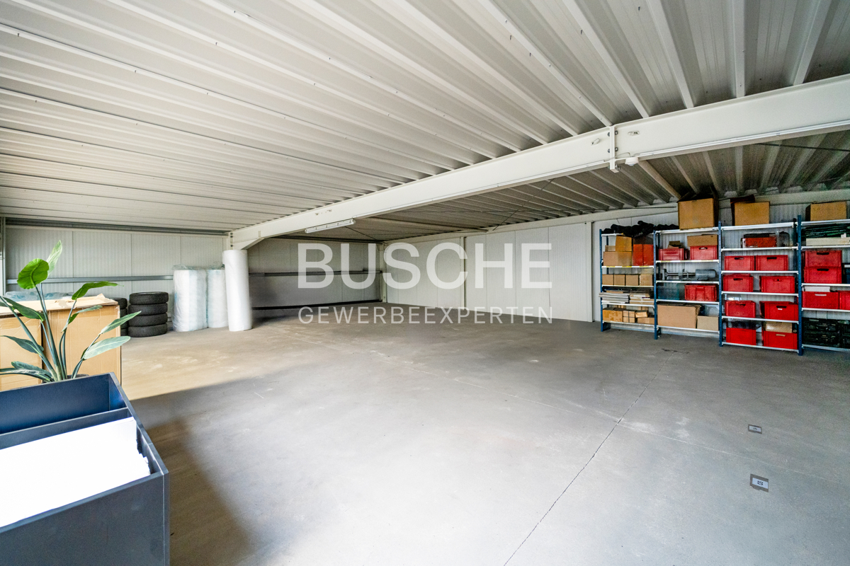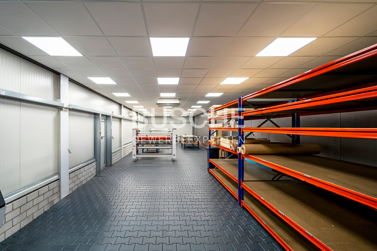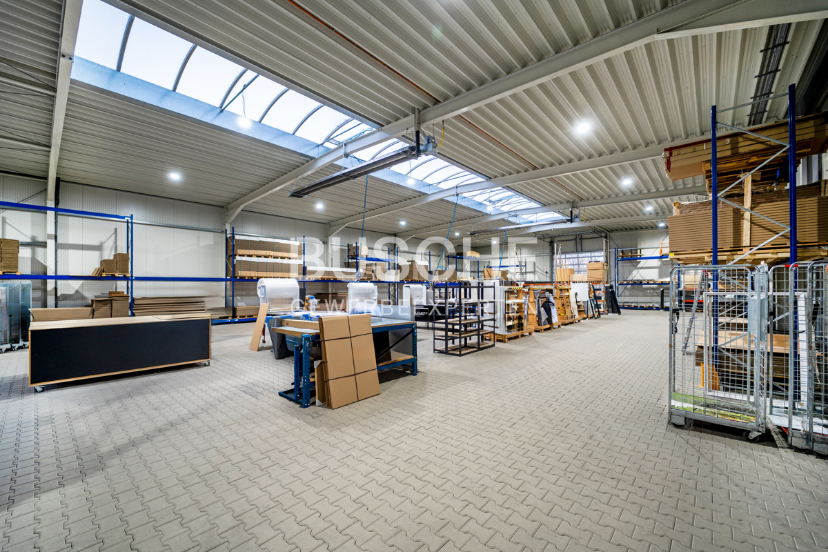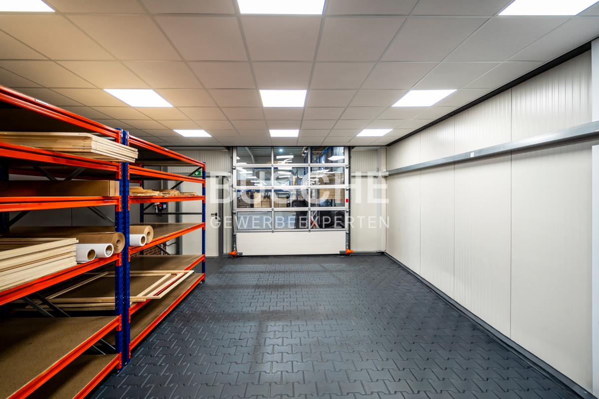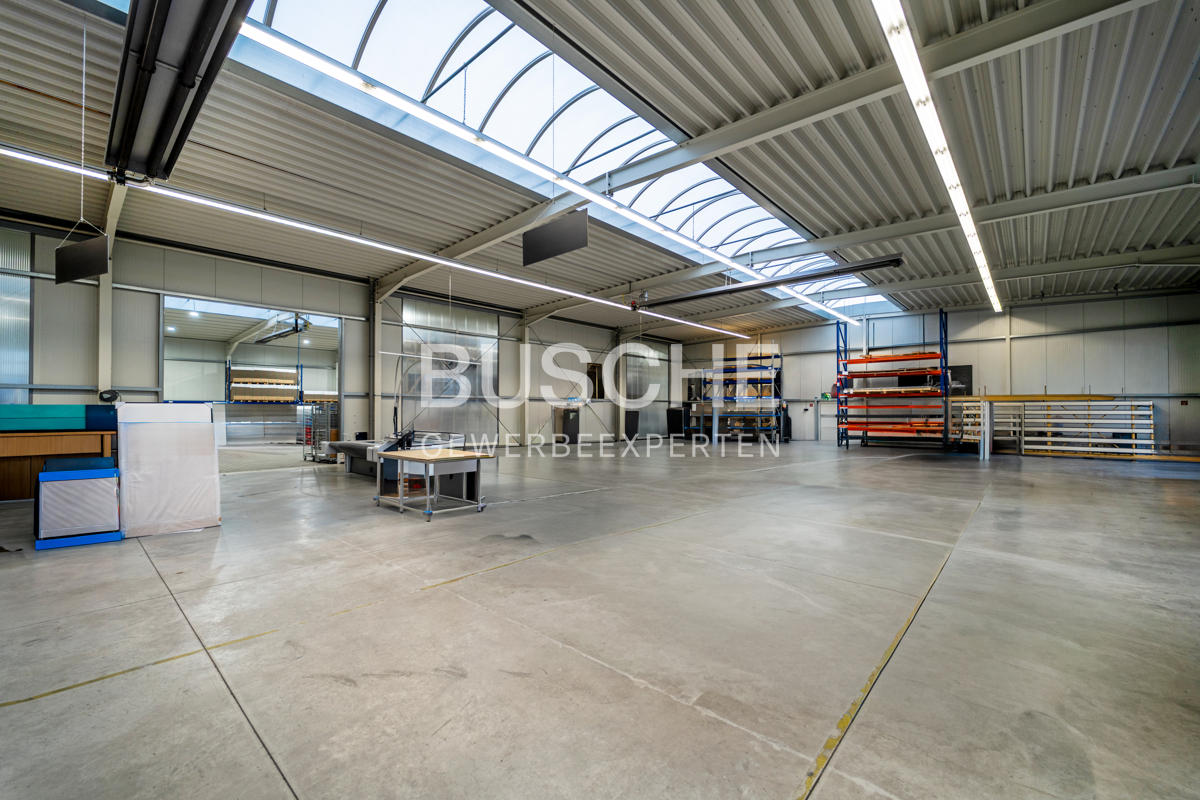 Der repräsentative Bürotrakt bietet insgesamt ca. 176 m2 Fläche. Vom Bürotrakt gelangen Sie direkt in die erste Halle. Dank einer Stahlbetondecke steht über den rund 575 m2 Produktionsfläche zusätzlich ein 197 m2 großes Lager im Obergeschoss bereit. Zwei ebenerdige Rolltore erleichtern die Anlieferung vom Parkplatz aus. Eine Zwischentür führt in einen klimatisierten Hallentrakt (ca. 120 m2) mit Rasterdecken und integrierter Beleuchtung – ideal für temperatur- oder feuchtigkeitssensible Produktionen. Über diesen Weg oder direkt aus der ersten Halle erreichen Sie die rund 702 m2 große Erweiterungshalle. Sie verfügt über zwei weitere Rolltore: ein Sektionaltor zum Vorderhof mit Rangierfläche und ein weiteres Rolltor zu einem kleineren, als Pausenbereich nutzbaren Außenareal. Hallenhöhen von 5,50 m bis 6,20 m (UKB), transluzente Wandelemente und Oberlichter schaffen ein helles, luftiges Arbeitsklima.