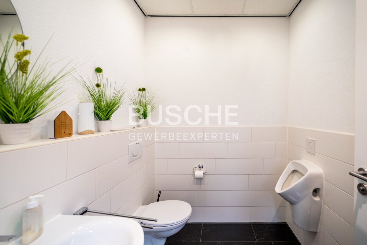 Bereits beim Betreten der Büroeinheit begeistert der freundliche und lichtdurchflutete Eingangsbereich mit eleganten schwarzen Fliesen und Option zur Besprechung. Von hier aus gelangt man in vier helle Einzel-/Doppelbüros sowie einen Aufenthaltsraum, in dem gekocht und eine Auszeit vom Arbeitsalltag genommen werden kann. Server- und Heizungsraum, Putzmittelraum sowie moderne Sanitäranlagen und eine Umkleide bieten Ihrem Team höchsten Komfort.