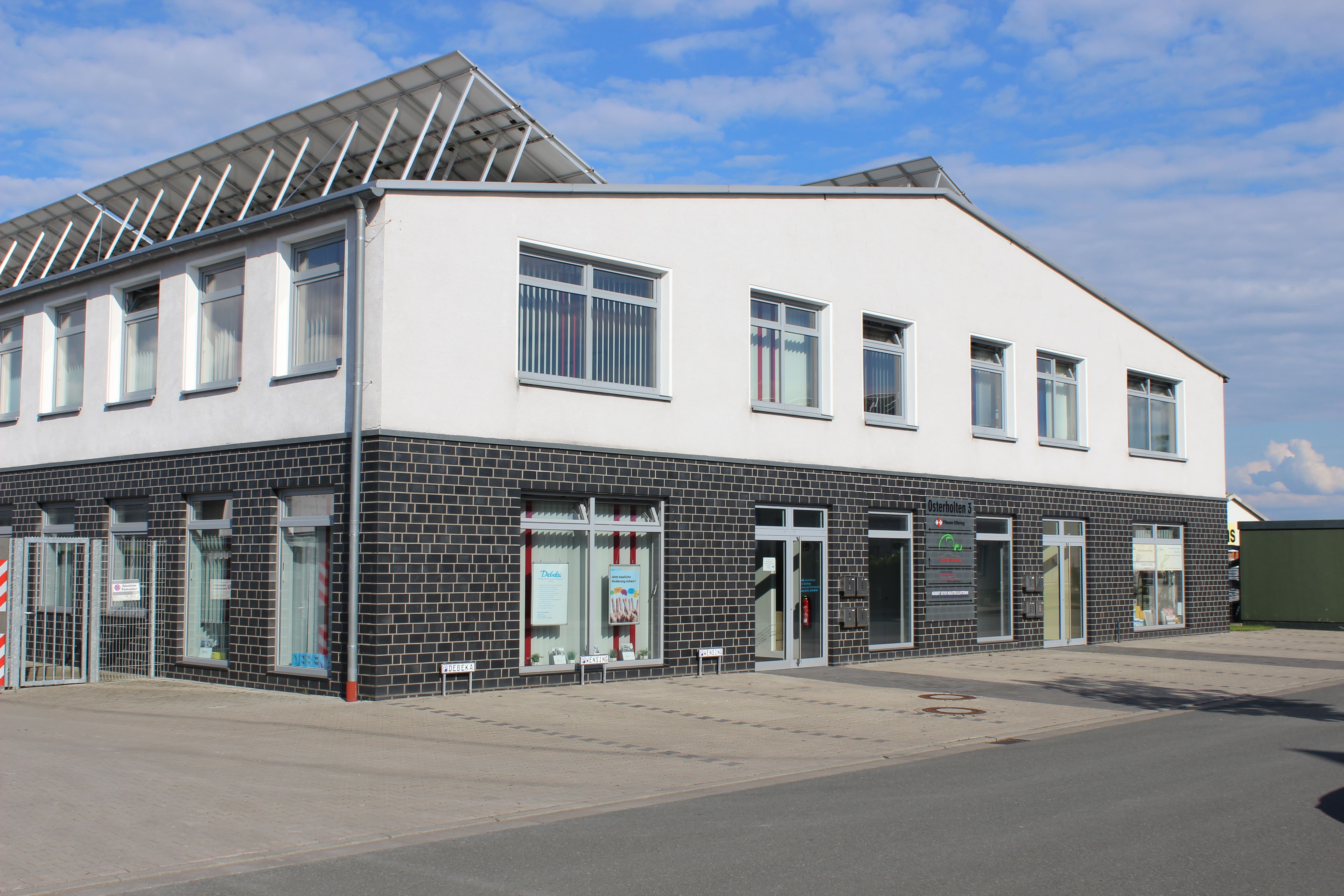| Nutzungsmöglichkeiten | Mieten Sie ein helles und freundliches Büro in unserem Objekt und profitieren Sie von einer angenehmen Atmosphäre im Gewerbegebiet Raesfeld-Erle Ost. Diese Gewerbeimmobilie zeichnet sich aus durch die einzelnen dort ansässigen Firmen und ergibt ein gut funktionierendes Miteinander. Werden Sie Teil dieses Systems und profitieren von den Synergien innerhalb des Gebäudes.