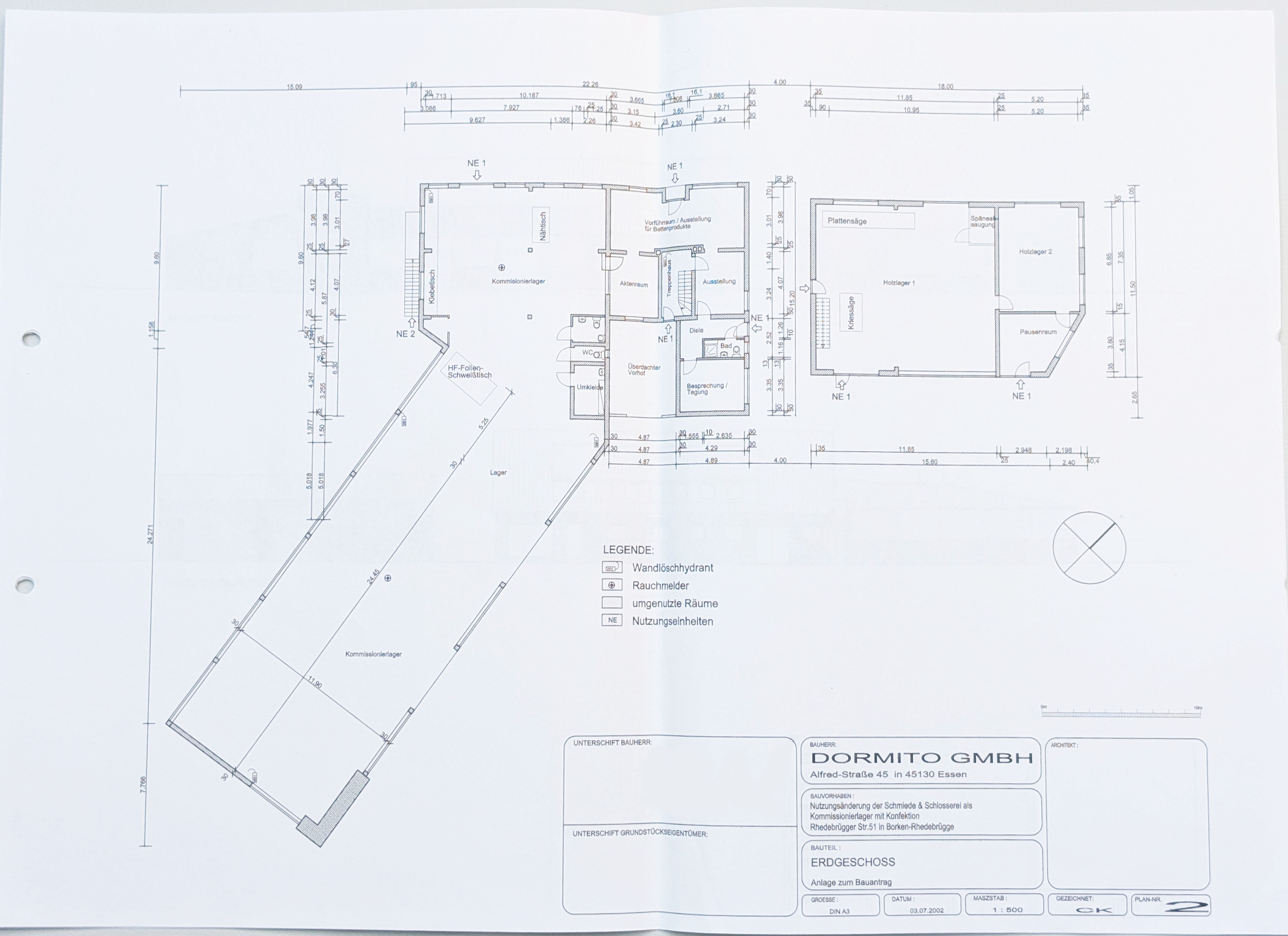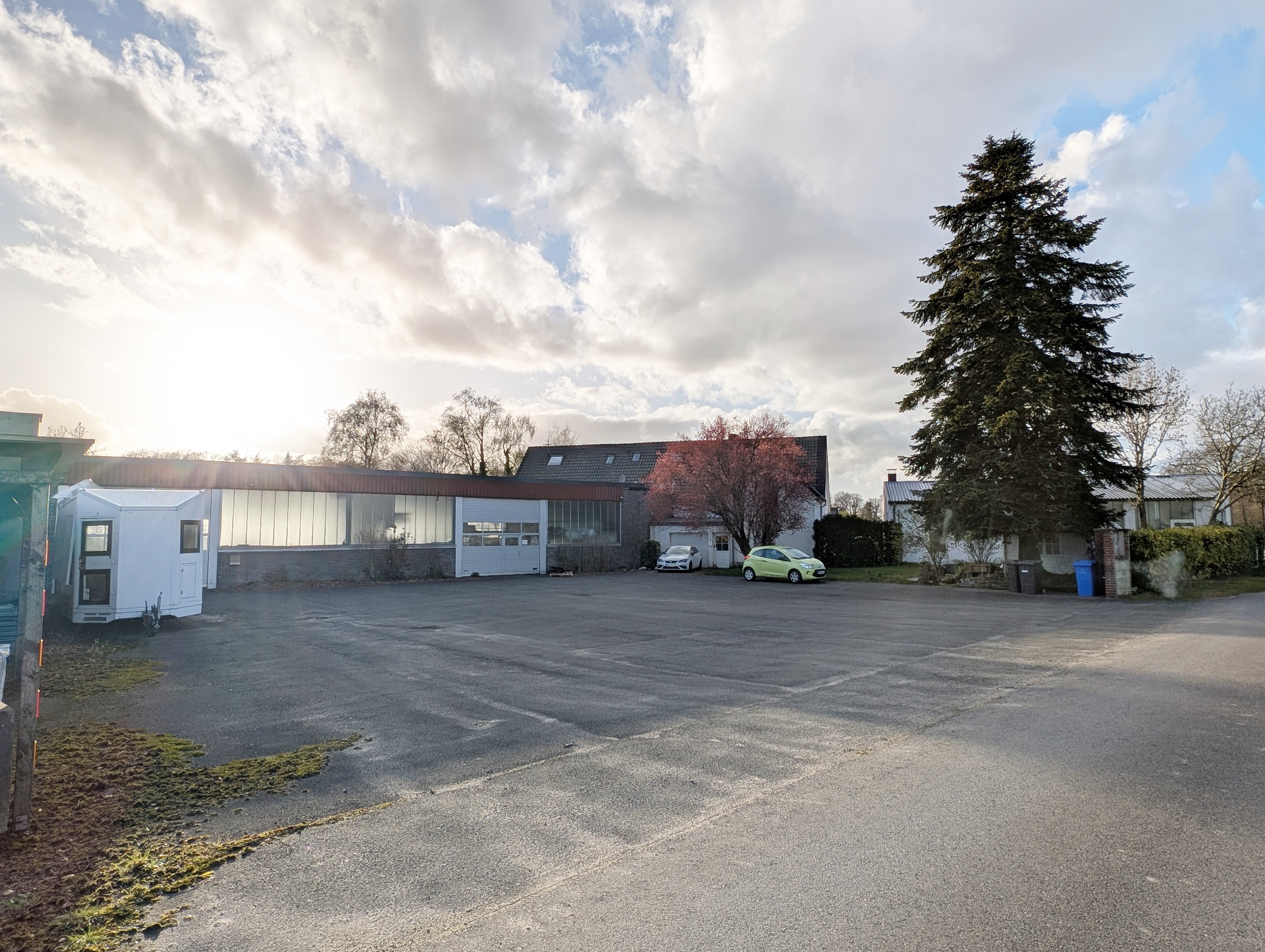 Das Anwesen bietet ca. 700 m² Hallenflächen sowie drei vermietete Wohnungen auf einem großzügigen Grundstück von rund 3.800 m² mit vielen befestigten Hofflächen und Parkmöglichkeiten.