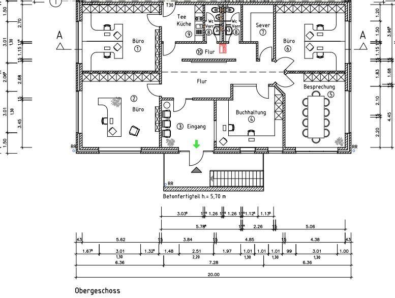 Der moderne Neubau wurde 2018 fertiggestellt. Die Raumaufteilung steht folgendermaßen zur Verfügung: 5 große und lichtdurchflutete Büroräume, 2 WC´s, 1 Serverraum und 1 Küche.