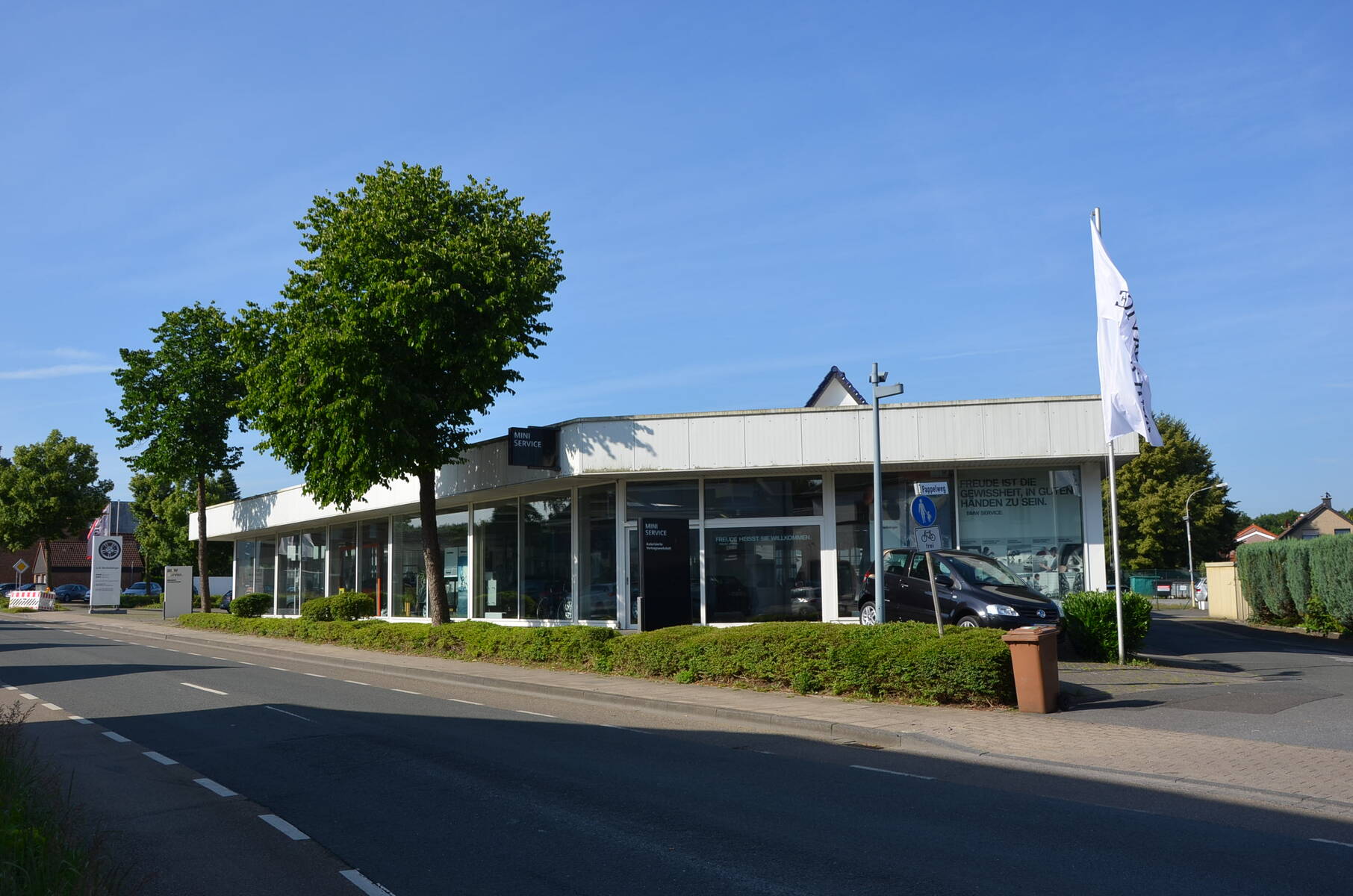 Das Gebäude befindet sich an der Hauptzufahrtsstraße von Neubeckum.