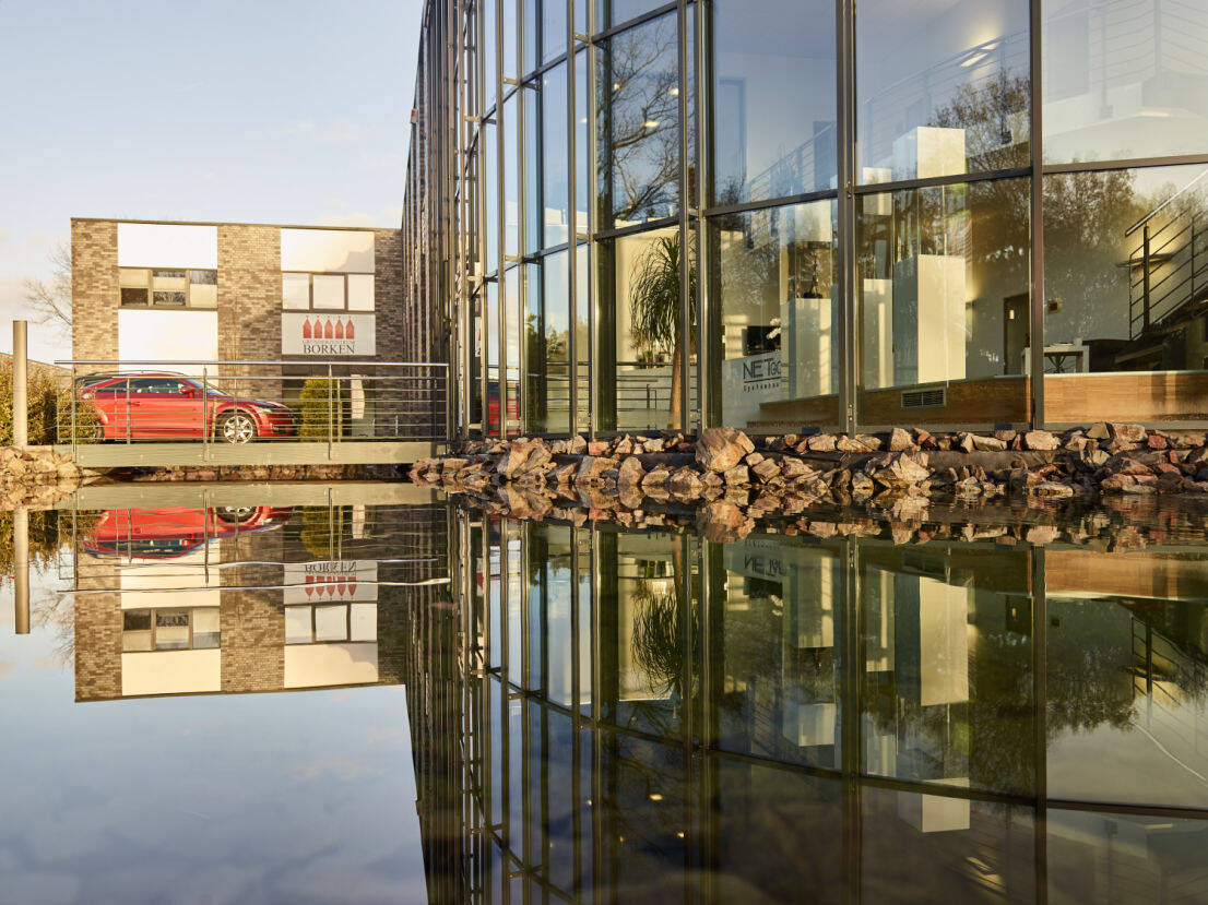 Das Objekt befindet sich im Hendrik-de-Wynen-Park, am alten Kasernengelände der Stadt Borken in erster Reihe und ist von der stark frequentierten Hauptstraße sehr gut erkennbar. Die großzügige Glasfassade bildet einen besonderen Blickfang.