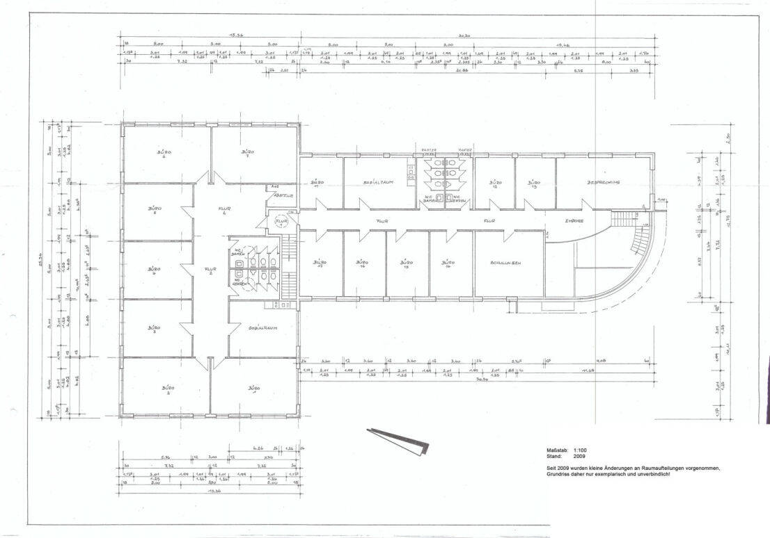 Direkt am Hauptteil der Immobilie ist ein weiterer Gebäudeabschnitt angrenzend. Dieser bietet weitere Büroflächen im OG und ist mit eigener Teeküche und eigenen WC-Anlagen ausgestattet. Dieser Nebenteil ist durch den Hauptteil erreichbar, bietet jedoch zusätzlich einen separaten Eingang. Somit kann dieser Teil eigenständig selbst genutzt und/oder untervermietet werden.