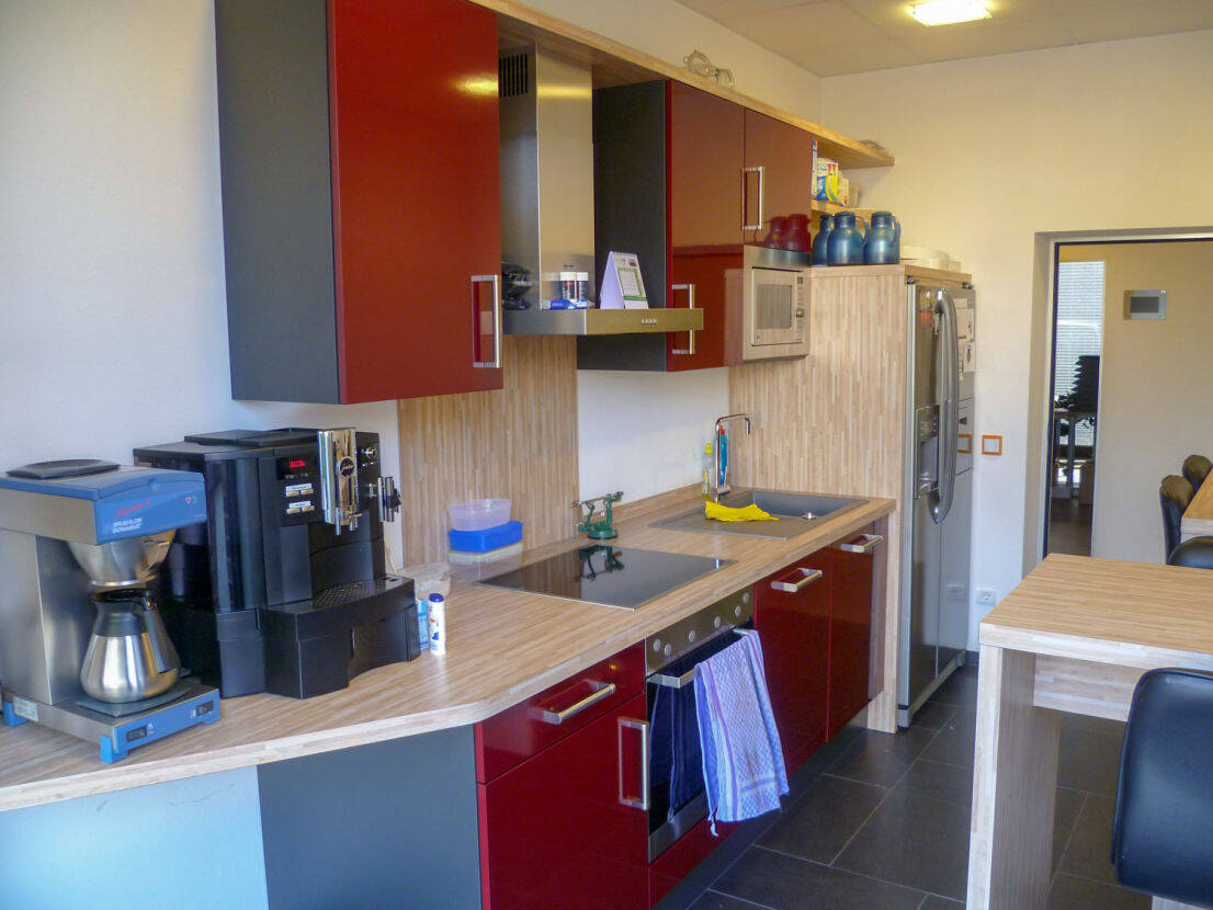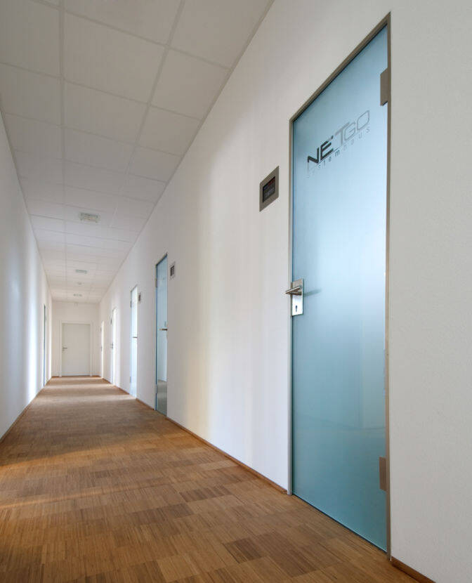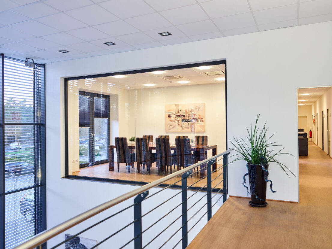Der Hauptteil verfügt über zwei Besprechungsräume, zwei Küchen, einen Serverraum sowie ein Lagerraum mit integriertem Werkstattbereich. Die Küchen sowie die Büro- und Besprechungsräume sind sowohl mit einer manuellen Schattierung, als auch mit Deckenklimageräten ausgestattet.