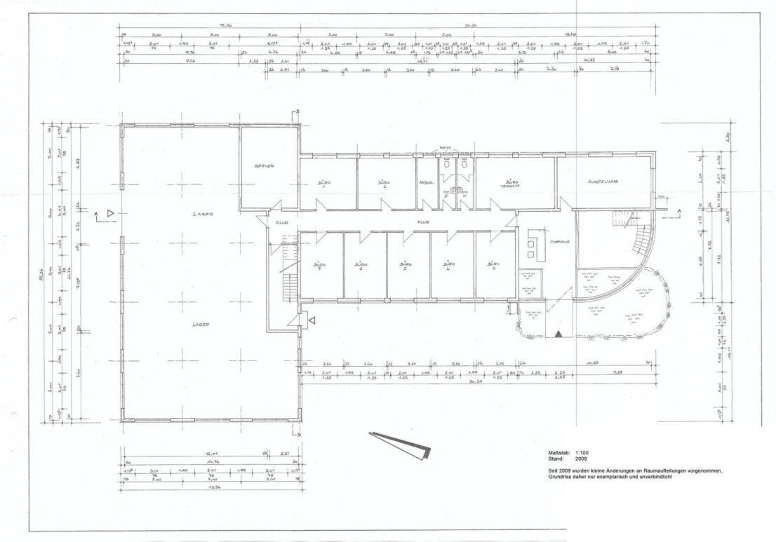 Das Gebäude besteht aus einem Hauptteil, einem Nebenteil, sowie Lagerfläche inkl. Werkstattbereich.